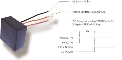 Modul för 2 timmars fördröjning används om effekvakt inte behövs, denna produkt kallas även 2h-spärr.